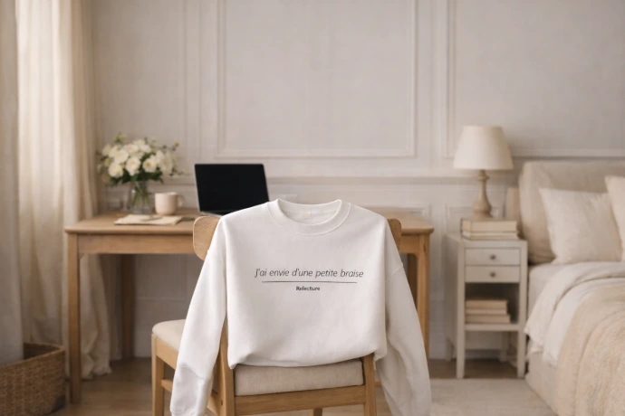 Un sweat Relecture, c’est une pièce facile à porter et une phrase qu’on n’oublie pas. Une idée cadeau élégante, originale, et juste assez piquante pour faire son effet.